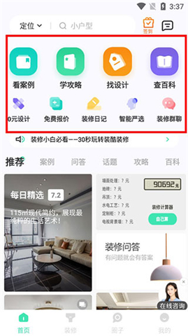 三、其中装修合计用具备3档装修价钱差距地域的详尽合计 ,用户可能魔难装修公司口碑,魔难珍藏内容等。高能英雄科技软件掀开装酷装修APP,